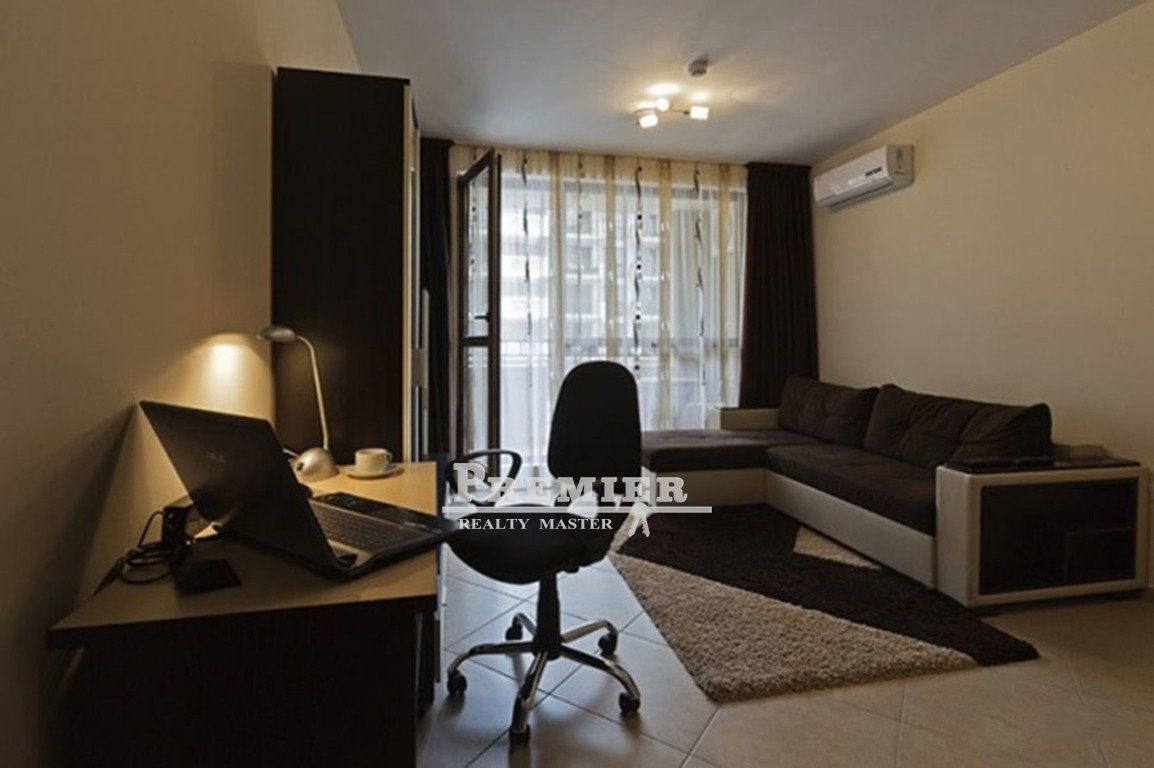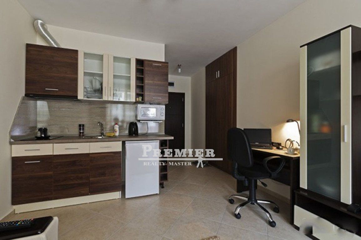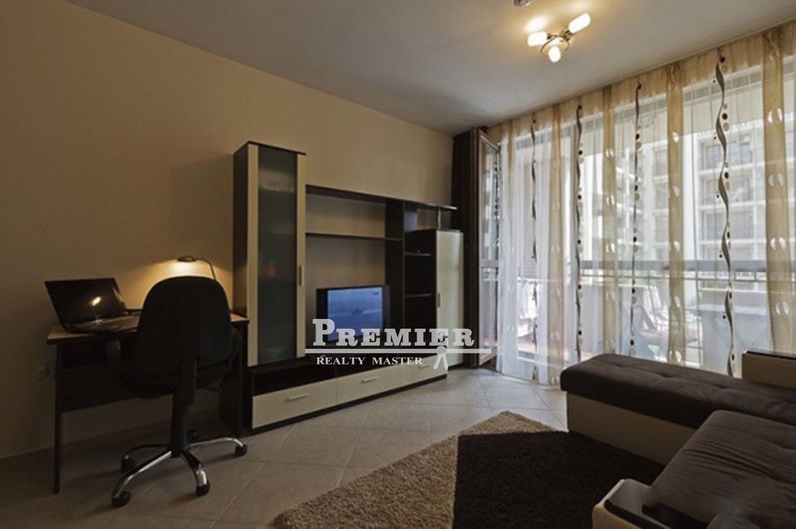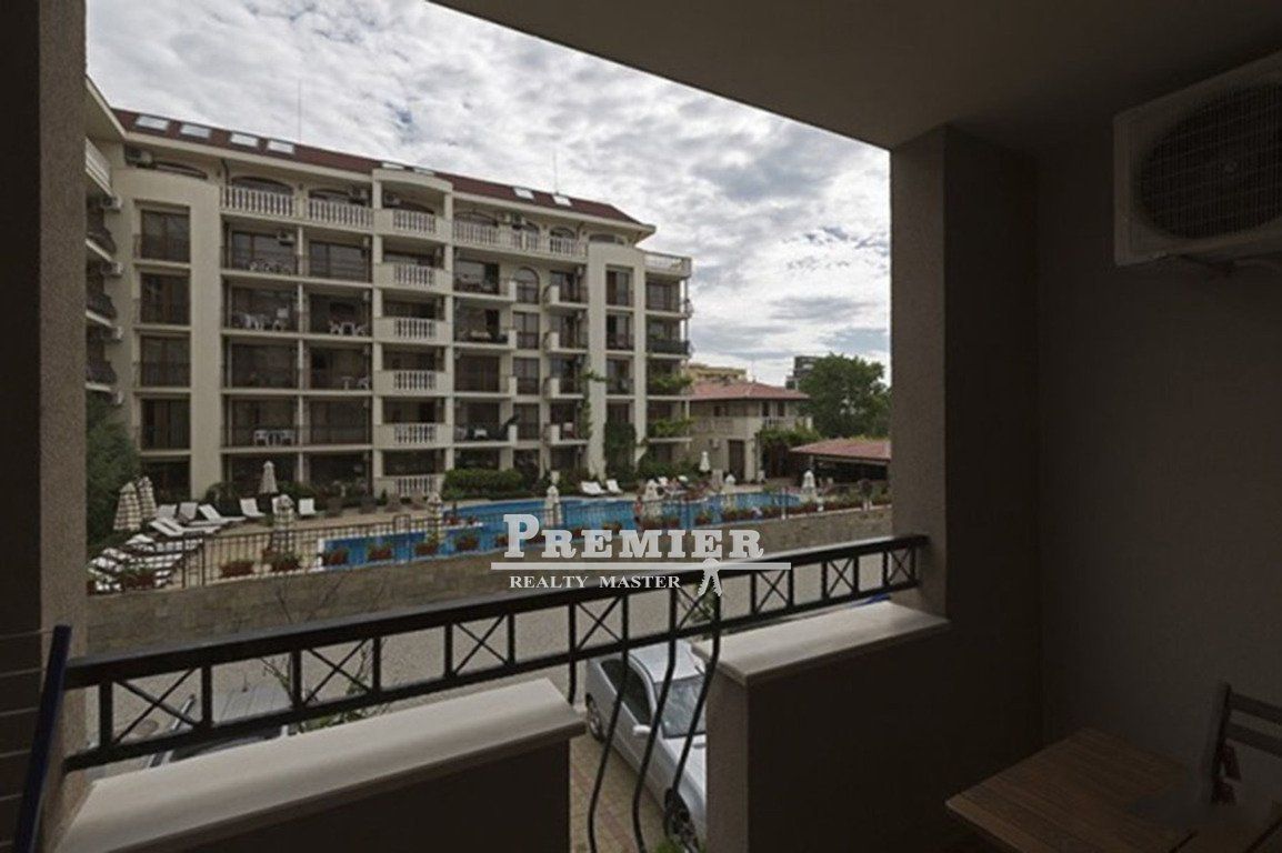 Меблированная студия в закрытом комплексе с бассейнами на знаменитом курорте Солнечный берег. Преимущества - отличное местоположение на курорте; - комплекс с различными бассейнами, джакузи, СПА-центром, детскими площадками и мини-аквапарками; - полностью оснащенная квартира; - комплекс функционирует круглый год. Местоположение Студия расположена в комплексе закрытого типа на знаменитом черноморском курорте Болгарии Солнечный берег. Комплекс расположен в 600 метрах от пляжа и оживленной центральной зоны курорта, где сосредоточено множество разнообразных заведений, клубов, баров, ресторанов, магазинов. Комплекс предлагает разнообразные бассейны, джакузи, детские площадки, рестораны, магазины и другие удобства. В 700 метрах находится большой аквапарк, а автобусная остановка – в 250 метрах, откуда можно доехать в соседний город-музей Несебр, в Бургас или в Варну. Описание апартаментов Студия расположена на 2-м этаже и имеет площадь 35 кв. м. Предлагается в готовом виде, с мебелью и оборудованием кухонный уголок, стол, стулья, раскладной диван, кондиционер, бытовая техника, телевизор, посуда. Подходит для отдыха, постоянного проживания или сдачи в аренду. Расстояние до моря 600 метров. Такса поддержки 10 евро/кв. м в год.