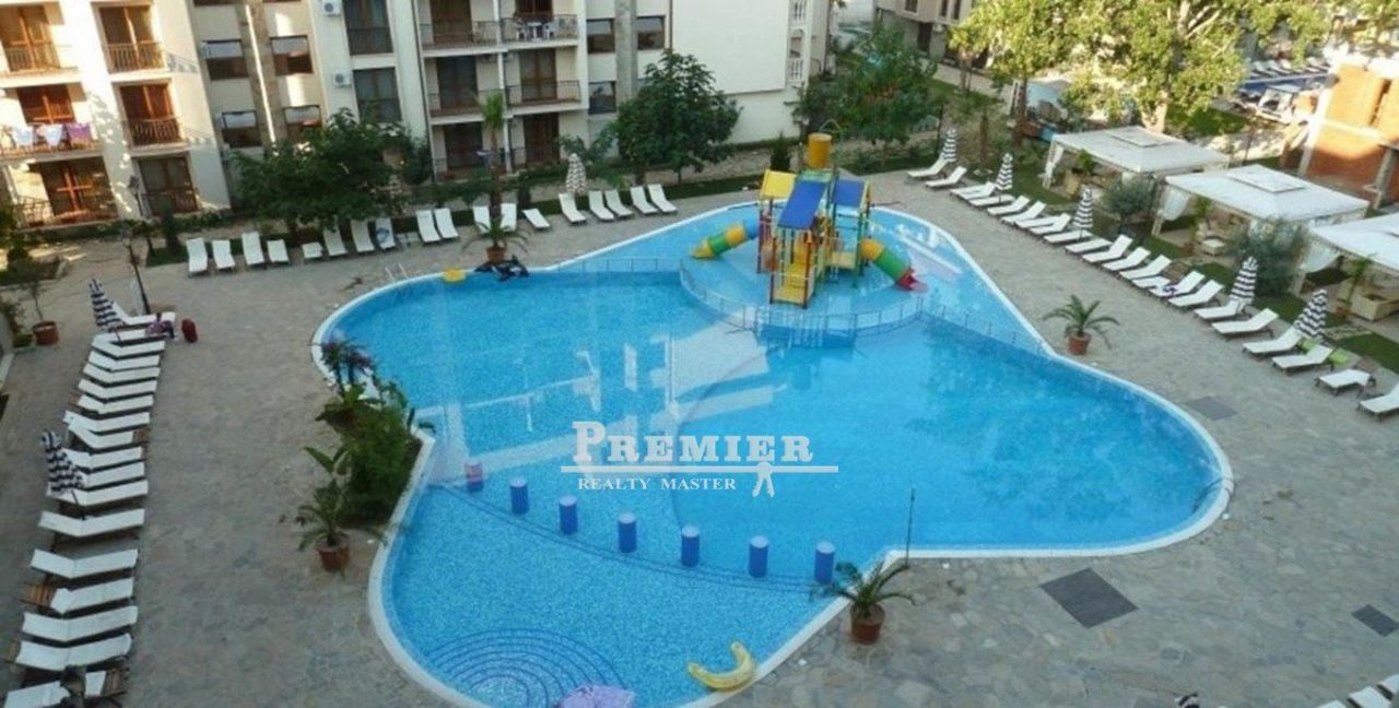 Продаются апартаменты с одной спальней в комплексе. Расположение - Солнечный берег, Болгария. 5-й этаж (всего 7 этажей). Площадь - 57 кв. м. Не сдавался. Новая квартира. В квартире кухня-гостиная и спальня. Обе комнаты выходят на бассейн. Балкон один, но выход на него из обеих комнат. В каждой комнате установлен кондиционер. В прихожей есть вешалка с зеркалом и шкафчик для обуви, в гостиной - большой угловой диван (3 спальных места), большой стол раскладывающийся, 4 стула, 2 пластиковых кресла, стенка. В спальне - раскладывающийся диван (2 спальных места), двустворчатый шкаф с большим зеркалом. Из техники - плита, духовка, микроволновка, холодильник, стиральная машина, чайник, пылесос, телевизор. Проведен интернет, телевидение (70 каналов, много русских каналов). Все в идеальном состоянии. На территории комплекса · 9 плавательных бассейнов с детскими секторами; · Первый в 'Солнечном береге 50-метровый бассейн с морской водой; · парк с детской площадкой, площадью около 6000 кв. м; · 3 искусственных озера с красиво озелененными газонами вокруг; · 4 внешних джакузи (бесплатно); · 2 мини-аквапарка для детей; · 2 закрытых и 1 открытый фитнес-центры (бесплатно); · волейбольная площадка на песке (бесплатно); · 3 бара около бассейнов; · 3 ресторана с внутренними и внешними местами; · 2 барбекю-зоны (бесплатно); · салон красоты; · супермаркет; · 3 спа-центра; · 3 сауны; · 4 детские площадки; · детская комната для игр с няней; · WI-FI интернет на всей территории (бесплатно); · подземная парковка; · парковочные места; · ресепшн; · круглосуточная охрана.