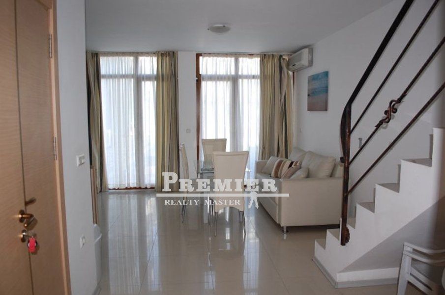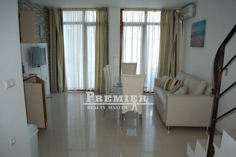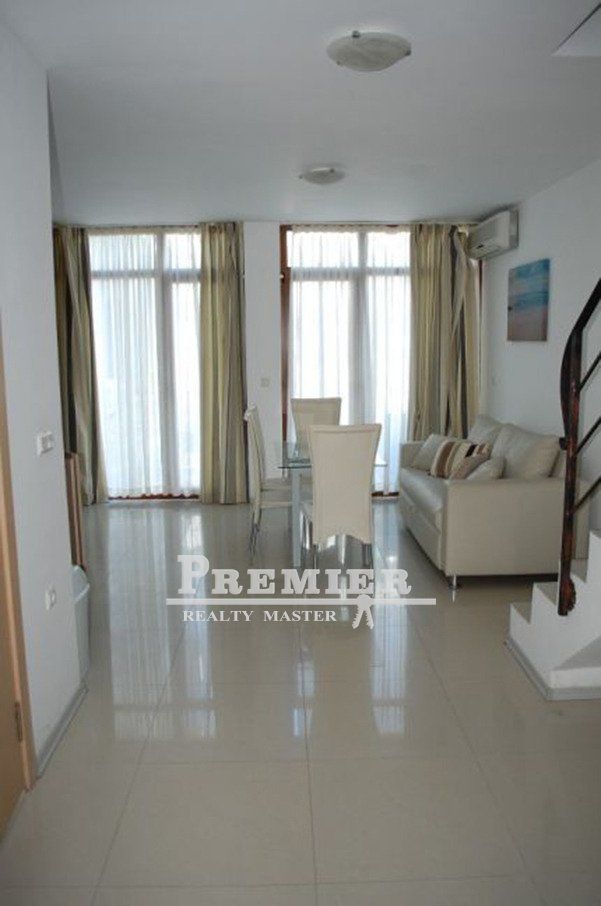 Предлагаем Вашему вниманию оригинальный двухуровневый мезонет с одной спальней в комплексе с бассейном в Солнечном береге. На первом этаже располагается гостиная, совмещенная с кухней, и санузел, а на втором этаже находится просторная спальня и еще один санузел. Вид во внутренний двор комплекса и на бассейн. Комплекс подходит для круглогодичного проживания. Рядом располагаются два парка с детскими площадками. Также поблизости есть вся инфраструктура - магазины, кафе, рестораны, остановки общественного транспорта и т. п. Удачная покупка для сдачи в аренду!
