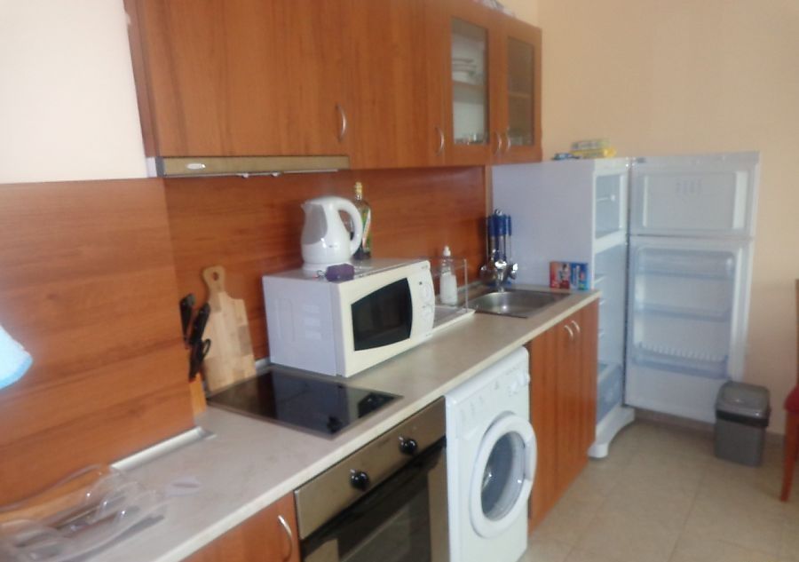 Апартамент находится в комплексе „Каролина“, курорт Солнечный берег. Жилье состоит из гостиной с раскладным диваном, телевизором, спальни, кухни с плитой, вытяжкой, холодильником, стиральной машиной, ванная комната с установленной душевой кабиной. Полностью меблировано и оборудовано.