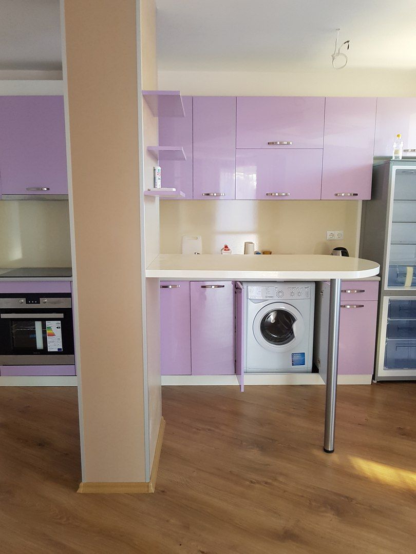 Апартамент площадью 102 кв.м., на 2 этаже 6-ти этажного дома, полностью оборудован: кухонный гарнитур с техникой ( электроплита, духовка, стиральная машина, холодильник, вытяжка), барная стойка, диван, выполнена дополнительная отделка стен и потолков.