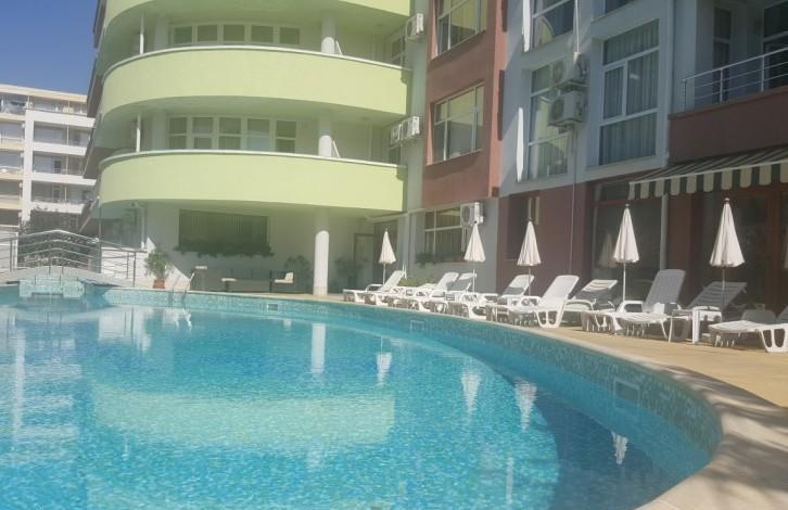 Комплекс расположен в тихой и зеленой части Солнечного Берега, примерно в 600 м от пляжа. Полностью меблирована и оборудована техникой. На территории комплекса: - бассейн - кафе-бистро - паркинг - охрана