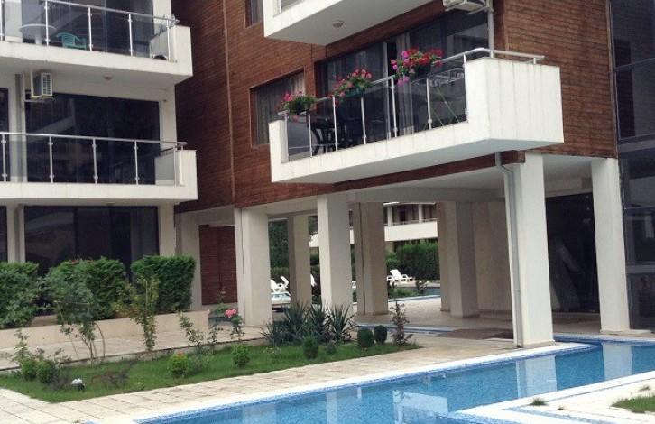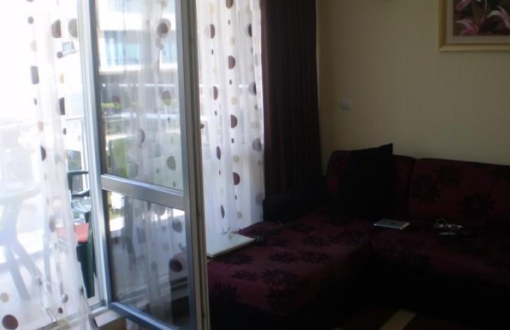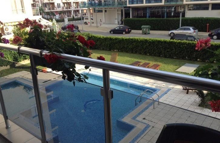 Квартира, предлагаемая на продажу, расположена в жилом комплексе в центральной части Солнечного Берега. Комплекс находится в 300 м от пляжа и в 400 м от центра Солнечного берега. В шаговой доступности находится вся инфраструктура: магазины, рестораны, кафе, бары, супермаркет, аттракционы и многое другое. Комплекс состоит их двух семиэтажных зданий. Территория комплекса ухоженная. Квартира находится на втором этаже здания. Окна квартиры выходят на бассейн. Планировка: гостиная комната с кухней и выходом на террасу, спальня, ванная комната с туалетом. В квартире проведен добротный ремонт \"под ключ\". Установлена мебель и бытовая техника. Квартира ухоженная и чистая, в аренду не использовалась. Цена: 31 000 евро.