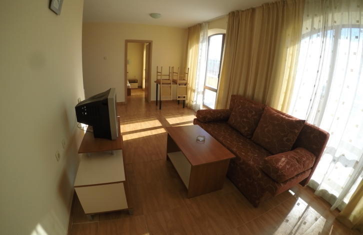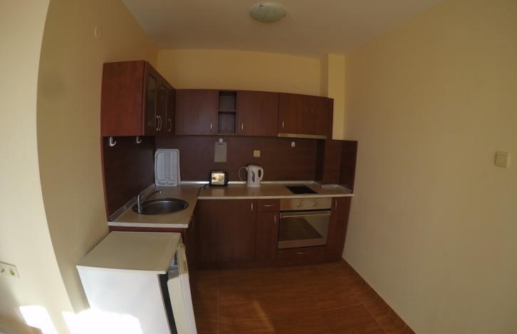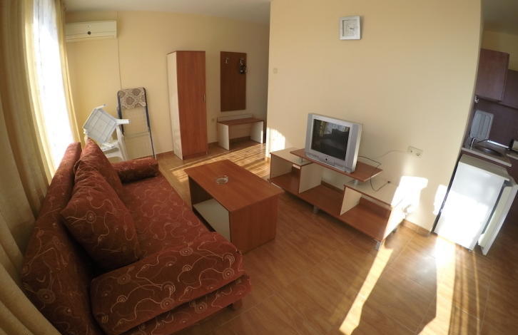 Квартира расположена на 6-ом этаже и представляет собой: коридор, гостиную с кухней, спальню, санузел и большой балкон с видом на курорт. Продается полностью меблированная и оборудованная, готова для проживания. Очень хорошее расположение комплекса, всего в метрах от большого супермаркета „Младост“, который работает круглый год. Комплекс располагает следующими удобствами и услугами: бассейн, ресепшен, магазинчики, уборка территории, охрана, парковка.