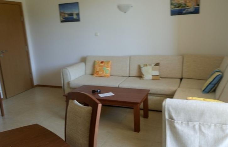 расположена на 3 этаже. До моря всего 5 минут ходьбы. На территории комплекса есть большой бассейн с баром, детский бассейн, детская площадка, теннисный корт.