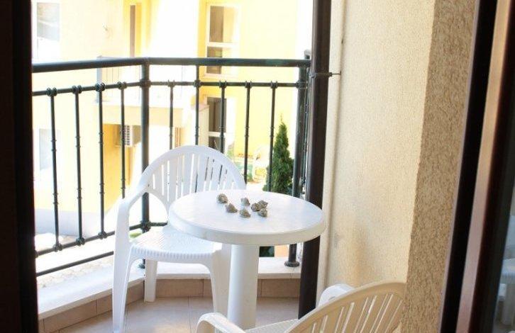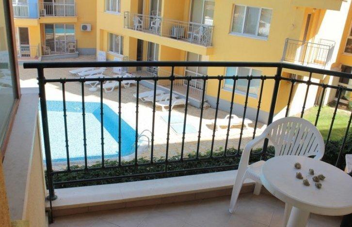 Предлагаемая к продаже квартира имеет площадь 67 кв.м и состоит из гостиной с кухней, спальни, коридора, ванны и туалета и двух балконов. Квартира находится на втором этаже, вид на бассейн соседнего комплекса. В здании имеется лифт, охрана, бассейн. Комплекс находится примерно в 600 метрах от пляжа.
