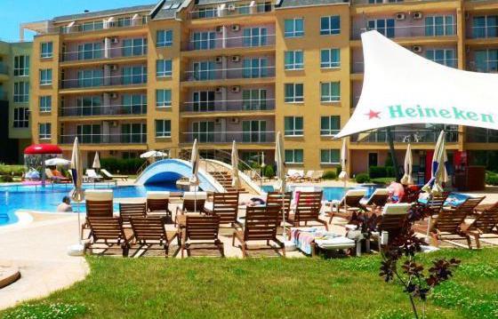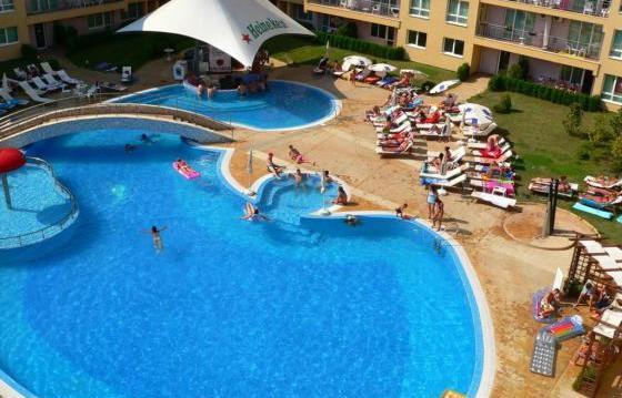 Территория комплекса ухоженная, есть детская площадка, бассейн, ресторан и бар у бассейна, удаленность от моря порядка 400 м.