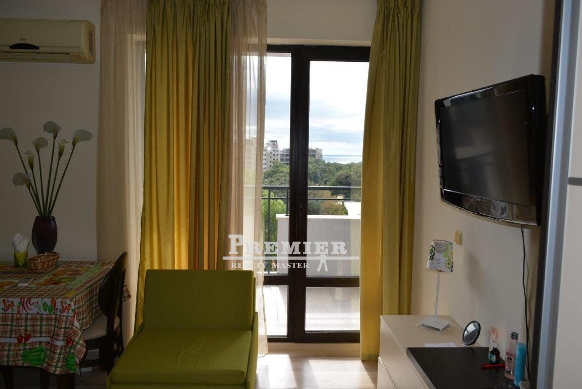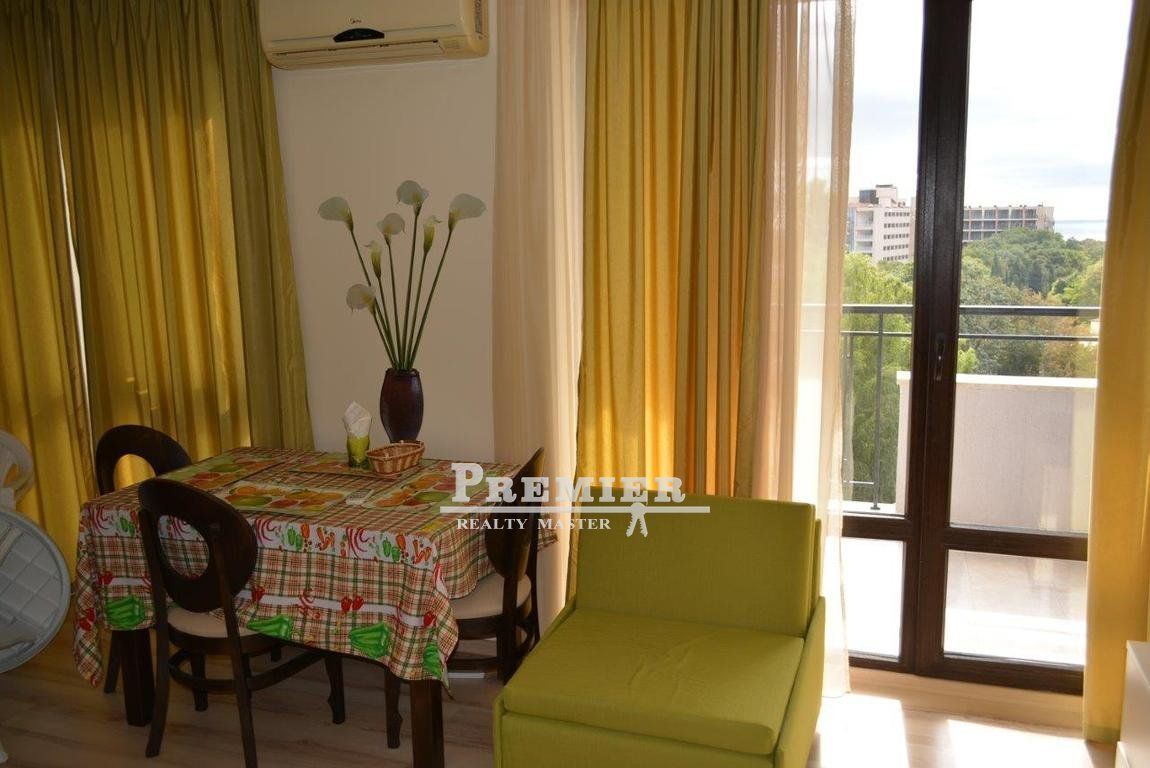 Предлагаем Вашему вниманию студию с видом на море в современном апарт-комплексе в южной части знаменитого курорта Золотые пески. Студия расположена на 5 этаже, состоит из просторной комнаты с кухонной частью, коридора, санузла и балкона. Площадь студии - 47,00 м2. Студия полностью оборудована и готова для проживания. Продается с мебелью и техникой! В квартире имеется кондиционер, возможность для подсоединения телефона, интернета и ТВ, деревянные двери, на полу - ковровое покрытие, кухонный уголок, балкон. Комплекс находится в южной части курорта Золотые пески, среди обильной зелени красивого естественного парка, в шаговой доступности от моря и песчаных пляжей и в непосредственной близости от большого аквапарка. В течение 25 минут езды на городском автобусе можно доехать из курорта в соседний город Варна, расположенный в 17 км южнее. Прямо перед комплексом находится автобусная остановка. Курорт Золотые пески Основные преимущества курорта - удобное местоположение по отношению к международному аэропорту, близость крупного города Варна, одни из лучших мелкопесчаных пляжей, чистое море, огромный окружающий природный парк национального значения и наличие минеральных вод. Курорт без преувеличения можно назвать жемчужиной болгарского Черноморья. Здесь расположены одни из лучших отелей, современный аква-парк и высококачественное обслуживание в многочисленных ресторанах, барах, клубах и дискотеках. Ежегодно на курорте отдыхают десятки тысяч туристов из разных стран. Наличие международного сертификата "Синий флаг“ гарантирует проведение полноценного отдыха у моря.
