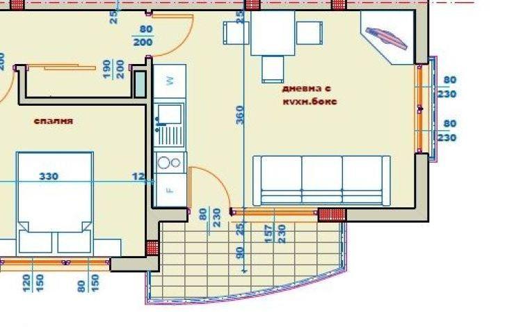 - Состоит из: гостиной с кух.боксом, спальни, прихожей, ванная с туалетом и балкона