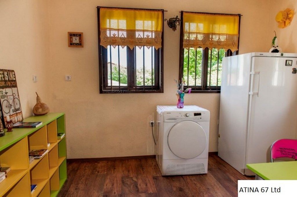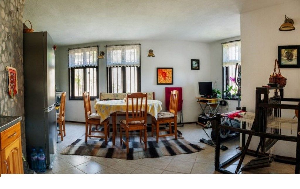На первом етаже: просторная гостиная, спальня, санузел. Второй етаж: - большая гостиная с емпоре, кухня, две спальни, прачечная, ванная, туалет. Мансардный етаж: две спальни и санузел. Подвальное помещение на 40 кв.м. В саде колодец, уголок отдыха с барбекю за домом. Центральное водоснобжение, електричество. В доме проживают круглогодично. Доступ по асфальтовой дороге. Расстояние до Варны: 24 км. Спокойное и чистое село.