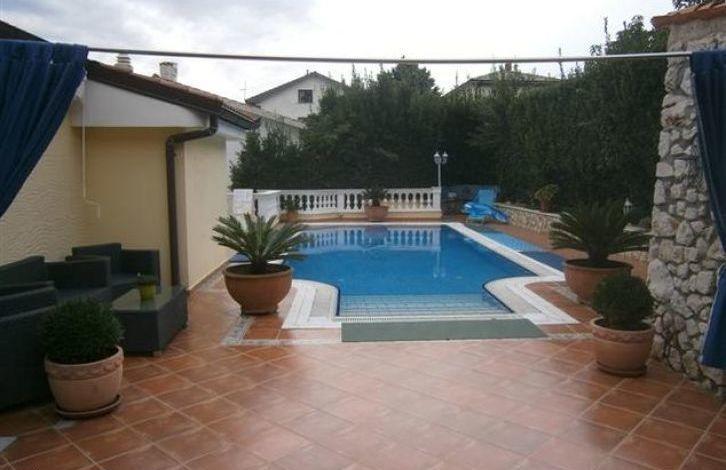 Виллу окружает ухоженный средиземноморский сад с большой террасой, бассейном, садовым домиком и барбекю. Центральное отопление. Спокойная локация в непосредственной близости от моря.