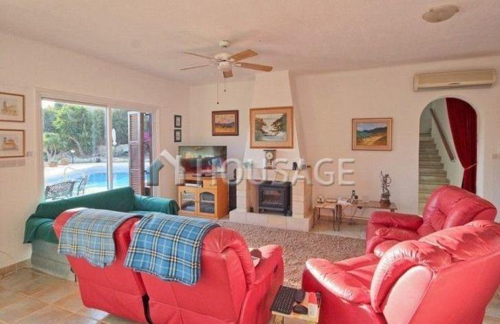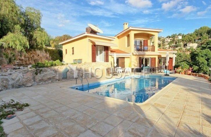 Вилла в Пафосе, район Tala. Вилла расположена на возвышенности, откуда открывается панорамный вид на горы и море. Три спальни, три ванные комнаты, частный бассейн, сад с фруктовыми деревьями, камин и крытый паркинг для двух автомобилей. Площадь участка 2118 м^2. Вилла укомплектована мягкой мебелью и бытовой техникой. Тихое и спокойное место, в нескольких минутах езды от города Пафоса и пляжа Coral Bay. В 5 минутах езды зоопарк, английские школы и детские сады. Титул в наличии.