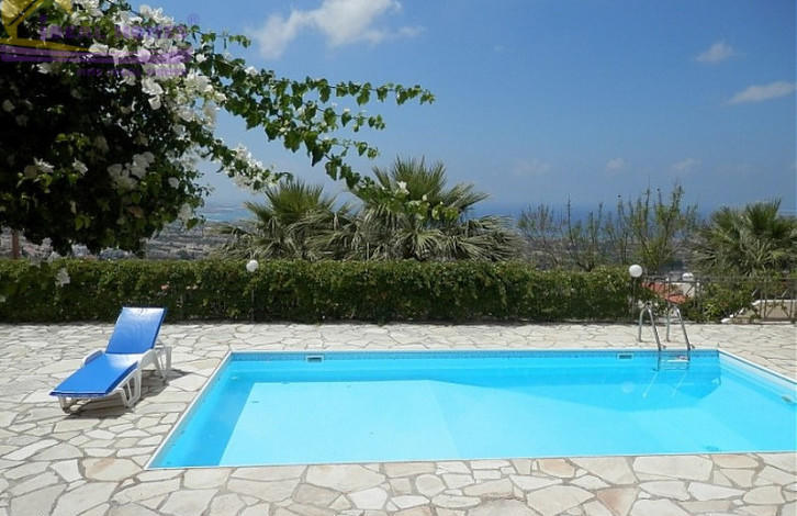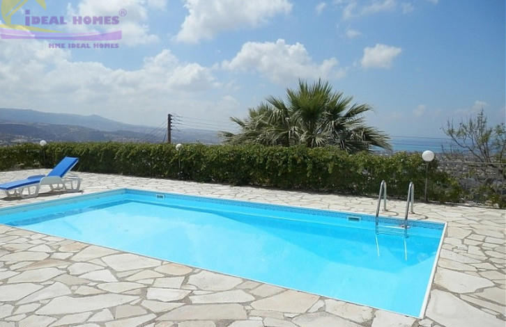 Sea view villa in Paphos. 3 bedroom + studio annex villa in Peiya. A main house upstairs comprises of family bathroom and 3 bedrooms with en-suite master bedroom. The ground floor consists of a kitchen, utility room, dining area, lounge and a guest bathroom. A studio annex consists of a room, kitchenette and bathroom. Title deeds.