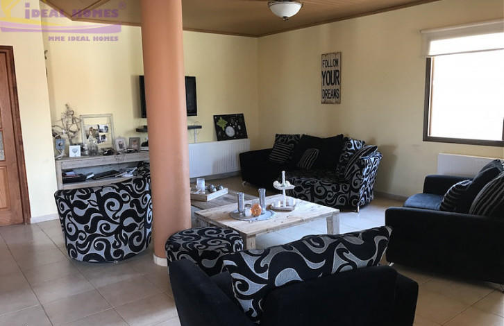 House located in a good location on Pyrgos village hills overlooking the surrounding area. Large garden area and possibility for a swimming pool. Provision for another 80m2 of covered semi-basement. Covered parking for 2 cars.