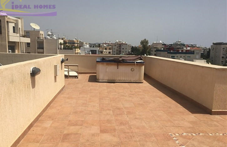 Two bedroom Penthouse situated in Germasogeia tourist area. Only 5 minutes walking distance to the beach. Covered area is 110m2+70m2 verandas. It has a large living/dining area, an open/plan kitchen with all electrical appliances, air-conditioning in every room, a roof garden with Jacuzzi and undercover parking. The complex has a common swimming pool and BQ area. All amenities are very close by.