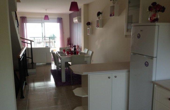Современный двух спальный таунхаус в небольшом комплексе всего из семи объектов и общей плавательный бассейн.В доме есть крытая парковка в передней части, а также отдельная кладовая с выходом на бассейн на первом этаже. Кладовая может быть преобразована в офис, складское помещение или территория для отдыха.Для входа в таунхаус у вас есть отдельная входная дверь, лестница перенесет вас в гостиную/обеденную зону с современной мебелью и полностью оборудованной кухней гостевым туалетом. Есть балкон из гостиной с видом на море и выходом на крышу где можно отдохнуть в уединении. Из кухни одна дверь с выходом на еще один балкон. Из гостиной лестница ведет к двум спальням с ванной комнатой с душем и балконом.Имущество продается с мебелью, сантехникой и элементами декора и имеет титул.