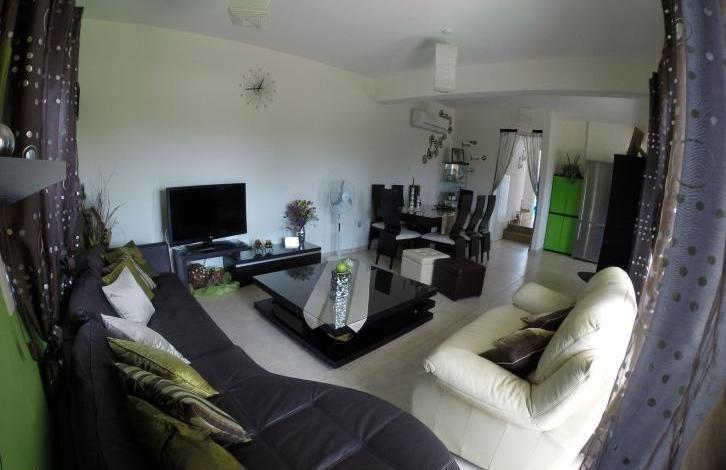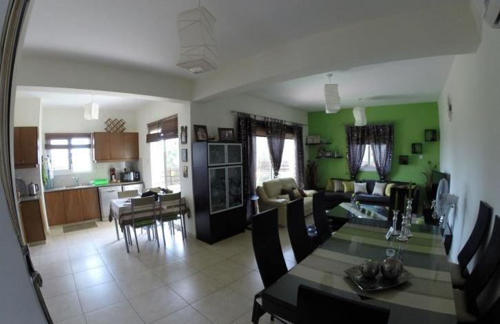Detached two-storied house, 255sqm, 155sqm Covered Space, 25sqm large Balcony, 3 bedrooms, 3wc, 1bath, 2showers, A/C, large living room-kitchen, electrical appliances, attic-storage, provision for heating, alarm system, satellite antenna, large yard and covered parking.