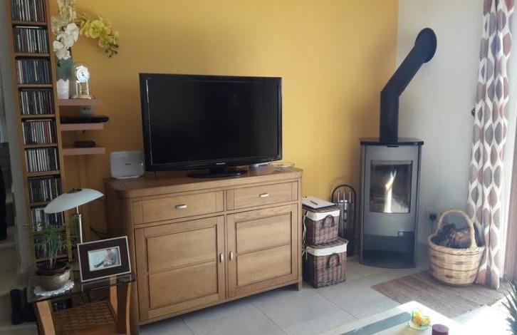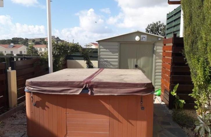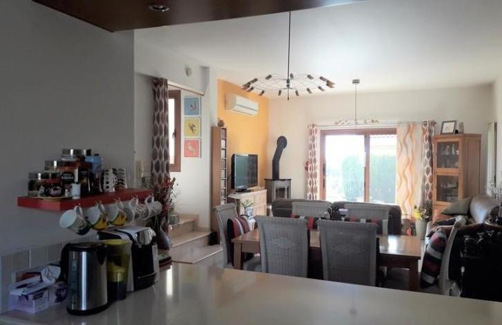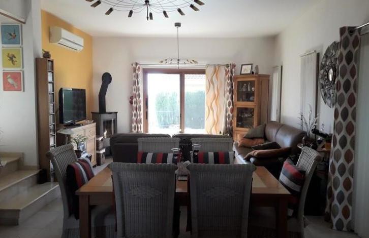 The house has been lovingly cared for by the present owners and is in truly immaculate order throughout. The house has air-conditioning throughout, also providing an efficient heating function during the colder months. On the ground floor there is a state of the art fully fitted kitchen with large expanses of granite composite worktops, looking through into the living and dining room. The floors are fully tiled throughout. Patio doors lead to a lovely patio where there are splendid views over the surrounding area. There is a stylish log burner situated in the corner of the living room. There is also a downstairs cloakroom. The accommodation comprises 3 bedrooms on the first floor, all with fitted wardrobes, approached by an elegant marble staircase, and a very large and luxurious shower room which has been recently refitted to a very high standard. Bedrooms 1 and 3 have balconies and Bedroom 1 has a ceiling fan. There is a further marble staircase to a second floor, where there is a utility area with a sink and drainer, some cupboards, and space for a washing machine and dryer. A door from here leads to a simply wonderful roof terrace with the most spectacular views all around, to the sea and also the mountains. Outside there are steps down to a lower garden area, currently being used as a secluded Jacuzzi area ! To the front, there is covered parking for 2 cars. The villa is link detached.