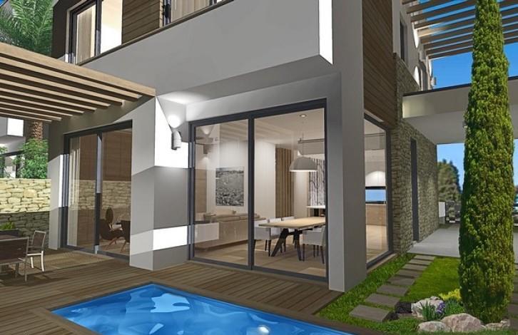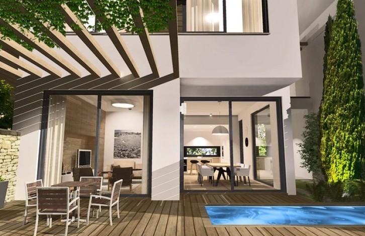 Located a short distance from the picturesque village of Agios Athanasios and within walking distance of the new premises of Foley’s Grammar School, a prestigious private school, Hara Zoe Residences make superb family homes. This is a residential development, combining 6 individual residencesAll villas have a large open plan interior design where families can enjoy long meals with friends. The yard features a lounging spot under the wooden pergola and a barbecue pit equipped with a worktop and sink for outdoor cooking. An inviting plunge pool and relaxation sundeck make Hara Zoe Residences a perfect setting to take advantage of the perfect Cyprus climate. The villas’ four large double bedrooms offer ample storage and the master bedroom includes an en-suite bathroom. The secluded 2nd ?oor features a double bedroom, bathroom and laundry area. The villas feature 3 full bathrooms and a guest toilet on the ground ?oor. The large roof garden on the 2nd ?oor is ideal for toasting over refreshing drinks whilst enjoying the stunning Cypriot sunsets. All villas are equipped with top of the range home automation systems, ensuring safety and convenience. Price for 4 bedroom villa from 497. 271 euro.