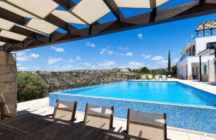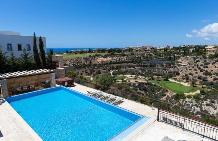 Villa Anthos is a beautiful, opulent, very large six bedroomed, five bathroomed property, based in a stunning location on a double plot with extraordinary views. The villa has a large 12 x 6m heated infinity edge pool (with child safe automatic pool cover) and jacuzzi with extensive outside space, overlooking the signature 7th hole of the Aphrodite Hills golf course and panoramic views beyond to the Mediterranean Sea. Villa Anthos is one of the largest properties on the resort which has recently been extensively refurbished to a very high standard. New entertainment areas have been added outside, a new master bedroom suite, rooftop sundowner terrace, ceiling fans in all rooms, fireplace for cooler evenings, all beautifully presented throughout. The outside space is equally as impressive with a large pool deck with sofa area, BBQ area with dining space and loads of room for sunbathing and relaxing. The sundowner terrace facing the sea view is the perfect spot for a glass of wine at sunset. The property is fully air-conditioned and centrally heated for year around comfort. The villa also provides a large, state of the art well-designed and equipped family kitchen. 6 Bedrooms5 BathroomsProperty: 248m2 / Plot: 2833m212m x 6m infinity edge heated pool and hot tubSpectacular sea viewsOverlooking the signature 7th golf holeFabulous entertaining areaTerracesCentral heatingTitle Deeds