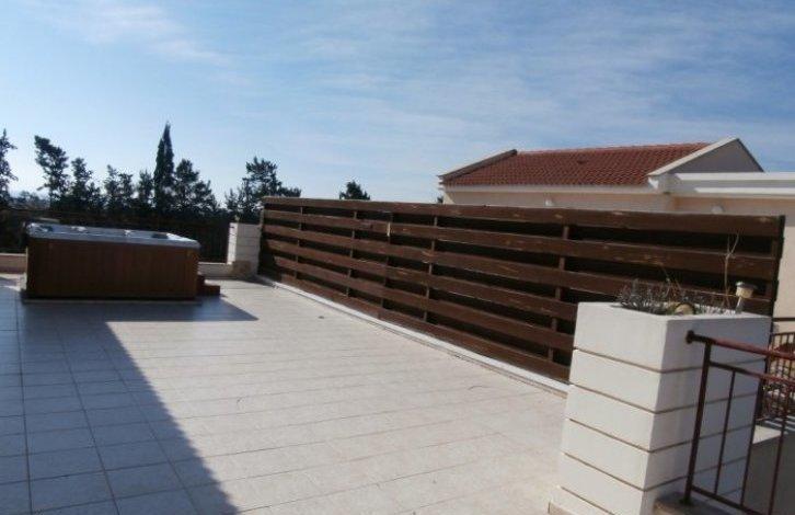 Это исключительная двух спальная, роскошная двухуровневая квартира пентхаус с 2мя большими верандами. Квартира расположена в красивом ухоженном комплексе с выдающейся архитектурой. Комплекс имеет большой общий бассейн, частные парковки и ландшафтный сад. Центр Пафоса находится всего в 1 километре и Като Пафос курорт и гавань расположен всего в 2 километрах. Недвижимость находится на верхнем этаже(2 и 3) с панорамным видом на море и горы. Есть лифт и лестница. Прихожая и просторная отдельная кухня. Гостиная просторная и открытого плана. Потолки очень высокие. За пределами гостиной и обеденной зоной есть большая крытая веранда с видом на город Пафос и окружающие зеленой зоной. Существует спальня с двуспальной кроватью и большой ванной комнатой на этом уровне, а также кладовая. Удобная мраморная лестница ведет на второй этаж квартиры с просторной спальней и ванной комнатой с душем. С двух сторон есть 2 большие веранды там расположены барбекю и джакузи. Вид с веранды на море, горы, город пафоса и туристическую зону.Цена включает в себя качественные светильники, элементы декора и мебель.
