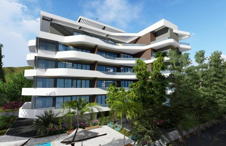 Luxury 2 bedroom apartment in a prestigious complex situated just a few minutes\' walk to the beach in Potamos Germasogeia area of Limassol city. The apartment reflects modern design and includes an open plan living room with dining area, 2 bedrooms, bathrooms and fitted kitchen. The complex consists of 12 spacious 2 - 3 bedrooms apartments and two 4-bedroom penthouses with roof gardens are arranged over 5 floors and also offer access to communal swimming pool, private parking space and excellently located within walking distance to all city amenities.