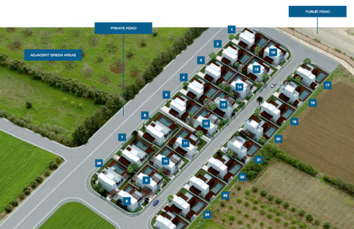 Комплекс состоит из 26-ти роскошных трех и четырех спальных вилл, расположен в самом центре туристической зоны Героскипу, в пределах пешей доступности от моря, проект предлагает потенциальным покупателям тихое и комфортное проживание в домах с уникальным архитектурным дизайном наполненных эстетическим шармом и окруженных пышными зелеными окрестностями. И если расположение является обязательным условием, то проект идеально расположен, что обеспечивает легкий доступ к целому ряду услуг и удобств, достопримечательностей, школе, больнице, магазинам, 18-луночному полю для гольфа и пятизвездочному курорту; Международный аэропорт Пафоса находится в нескольких минутах езды.