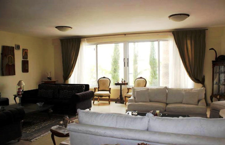 The house consists of 5 spacious bedrooms. The master bedroom has a walking closet and a bathroom with a Jacuzzi. An enormous living room, 2 bathrooms, 3 WC, 2 kitchens. The main kitchen consists of high quality workplaces and storage cupboards, a dining area, a living room and a utility cellar. It also features a private pool of 38sqm, a detached utility room with a WC and a shower, a large landscaped garden and a garage with electric doors. It is located in a prime quiet location (Universal) and further into a cult e sac street. Additional features: central heating, air-condition, Stock - cellar, oak worktops in kitchen, Greek quality marble floor in the living room, staircase with Greek marble, parquet in bedrooms, automatic watering, modern architectural design, comfortable space on the roof that can be also used as a roof-garden, solar panel with compression, satellite, double glazing, drilling for watering the garden, freshly painted, large verandas with pergolas, and outdoor stone floors Karysto.