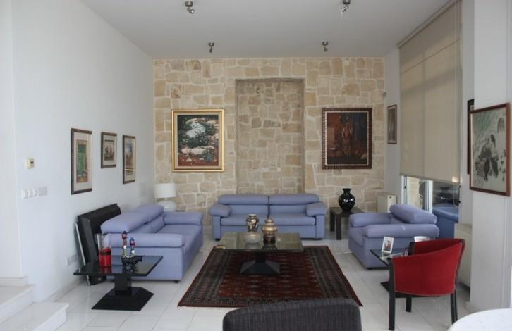 The villa is located in one of the most expensive area in Cyprus Mesovounia in Limassol outskirts. The plot is about 1000 sq. meters. It consisted of: * ground floor of 200 sq. meters with two sitting rooms, dining area and big kitchen with sitting room and dining table and a gest toilet * first floor of 100 sq. meters with four bedrooms, three bathrooms two of them ensuite and an open plan office. * basement is 165 sq. meters consisted of a studio with shower, small kitchen with washing machine, three storage rooms, and boiler room and parking place for 3 cars. There is a mature garden and a swimming pool 4x8, shower and toilet. The house faced south and have unobstructed view to the sea.