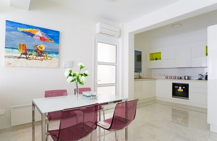 The villa is situated in a close gated complex near the sandy beach Coralli. There are 4 bedrooms in the house, 2 bathrooms, guest toilet. In the living room there is a huge folding sofa. Scavolini kitchen, full set of Miele appliances. Expensive Mitsubishi air-conditions, electric heating. The swimming pool is situated on the plot, the garden has fruit trees and other beautiful trees. There is a sea view from roof garden which can be perfect place for barbecue or jacuzzi area. The covered area of the house is around 186 m2, the uncovered area is 45 m2, the roof garden is around 39 m2, the plot is around 270 m2. Beautiful complex near the sea and sandy beach. There are children's playground, the play room, communal swimming pool, barbecue area, small gym, sauna and 24-hour guard Title Deeds ready.