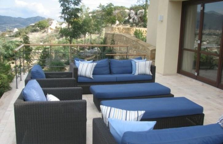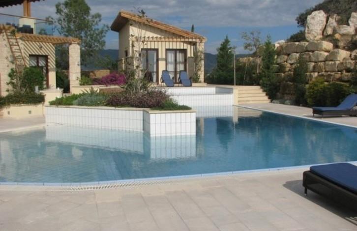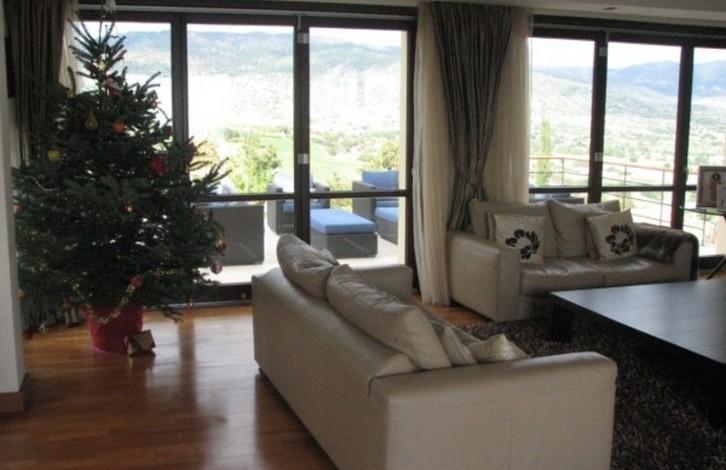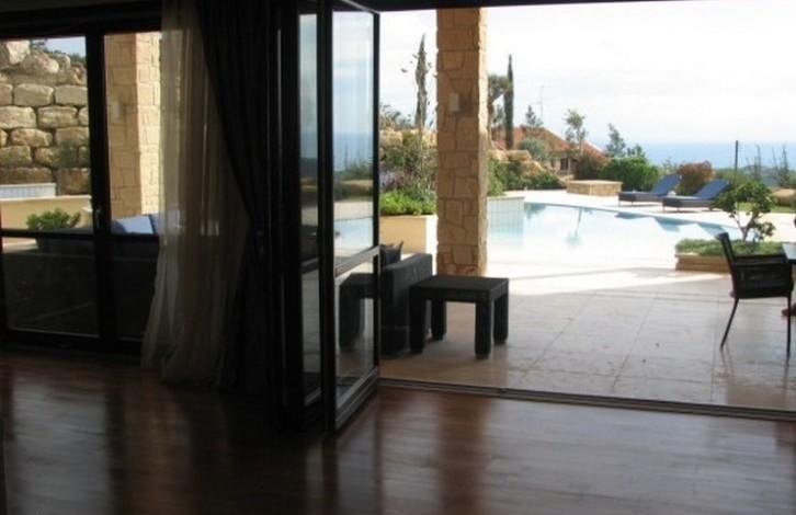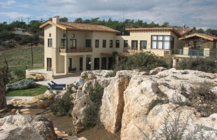 A unique villa offering spacious, well designed living areas, surrounded by beautifully landscaped gardens. From it's elevated position you can enjoy breathtaking views of the valley, the Mediteranean Sea and the surrounding countryside. Situated just 10 minutes from the beach and the town centre, the villa's layout has been designed so full use can be made of both the indoor and outdoor living areas, ideal for entertaining and making the most of the long Cyprus summers. Ground Floor: - Large living room with real log fireplace surrounded by patio doors on either side leading out to the swimming pool area and outdoor seating areas - Fully fitted designer kitchen with dining area, with high quality fitted white goods - Family room with a second real fireplace - Guest wc - Office / 4th bedroom with en suite Basement: - Two storage rooms - Utility room - Larder - Double garage First floor: - 3 bedrooms all with en suite (additionally the master bedroom has a dressing room area - Good sized verandas and seating areas, pergola Outdoor area: - Large swimming pool, ample patio and seating / sunbathing areas with sea and mountain views. - BBQ area - Separate Guest house with en suite bedroom - Separate Gate house with living room, bedroom and en suite - Summer house enjoying magnificent sea views - Beautiful landscaped grounds surrounding the villa extending to 7,400 m2 The many high end features include: - Solid wood flooring throughout - High quality fittings in all areas - Secure gated entrance - Visual security system - Satellite dish - Underfloor heating - Air conditioning - Automated irrigation system
