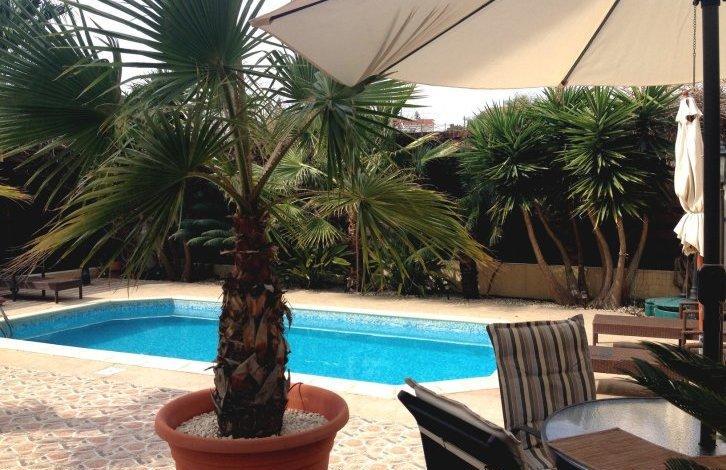The house is located in Limassol, area Moutayiaka, just 15 minutes walking to the sandy beach, walking distance to supermarket Metro, kiosks, taverns, restaurants, etc. The house has:First floor: 2 bedrooms, 1 master bedroom, 1 bathroom;ground floor: living room, kitchen, guest toilet;Basement level: 1 office room, small kitchen, living room;Covered BBQ area, private swimming-pool, covered parking. Price: 570. 000 Euro