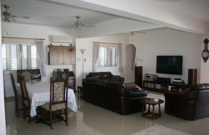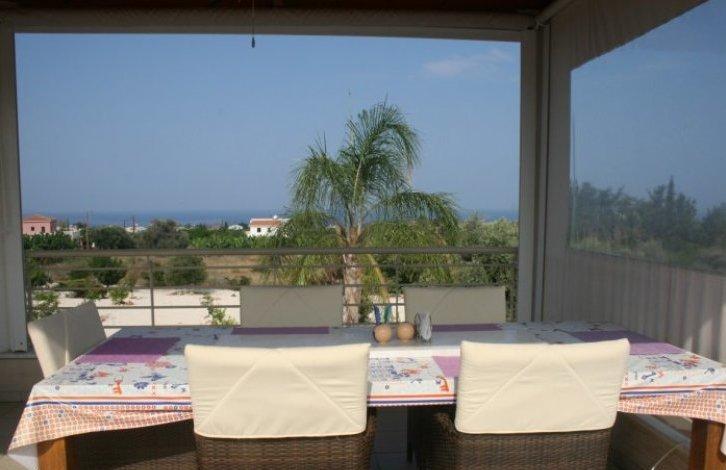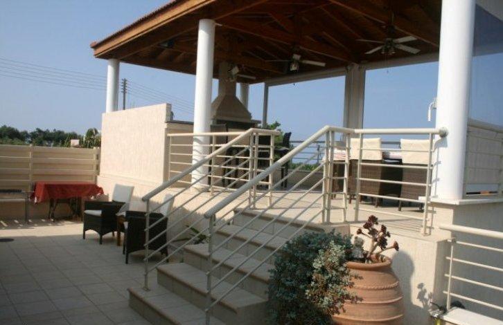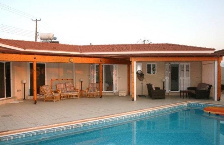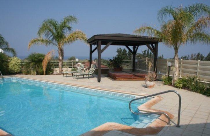 Это эксклюзивная резиденция которого была построена для владельцев. Дом расположен в очень тихом районе Агиос Георгиос (Святого Георгия), в окружении зелени и фруктовых деревьев. Участок очень большой 2,714 квадратных метров с прекрасным ландшафтным садом. Дом состоит из 210 квадратных метров.Бунгало очень хорошо построен и роскошный. Планировка дома делает его очень удобный для проживания. Все комнаты имеют вид на большой бассейн, ландшафтный сад и море. При входе в дом впечатляет красивое крытое крыльцо. Слева от дома есть большая крытая двухместная парковка.На вилле есть большая открытого плана гостиная / обеденная зона и просторная отдельная кухня полностью оснащена качественной мебелью и оборудованием. Ближе к гостиной / обеденной зоне есть большая двуспальная спальня для гостей. Снаружи к гостиной / обеденной зоне есть очень большая крытая веранда с выходом к бассейну с соленой водой, джакузи и площадкой для барбекю. На другой стороне гостиной / обеденной зоне есть еще 2 двухместные спальни с ванными комнатами. Под зоной джакузи есть две комнаты которые сейчас используется как мастерская. Они могут быть очень легко превращен в однокомнатную квартиру, если есть необходимость. На участке много зон для отдыха окруженные ландшафтным садом. Вилла имеет свою собственную воду из колодца в саду.Расстояние до пляжей Корал Бэй и удобства расположено в 10 минутах езды и бухта Святого Георгия находится в 5 минутах езды. Пафос находится в 15 минутах езды и Пейя 10 минут.