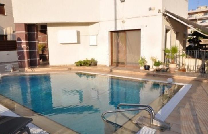 Modern House with private pool is located in a cosy area of Limassol behind roundabout Agia Fyla. The house has two floors and basement. Split system of air – conditioning provides a special comfort in hot summer days while in winter underfloor heating will keep you cosy. There are Carpeted Stairs joining ground floor with basement and 1st floor. On the ground floor there are a kitchen, a sitting room, a toilet. Sitting room is spacious and equipped with all necessary things like cosy sofa, flat screen TV, Blue Ray DVD. Fully equipped kitchen (cooker, microwave,oven,dishwasher,coffee machine). All equipment Miele. On the 1st floor there are two bed rooms , guest bathroom, one kids room, kitchenette. All bed rooms are equipped with king size beds and orthopaedic matresses, TV,DVD. Master bed room is en suite. Spacious guest bath room and private bathroom are equipped with electric towel dryers. On the 1st floor is also Kids Room which could be converted in bedroom. The kitchenette with teapot and fridge is one more facility to have your tea or juice or fruit or to prepare quickly a baby food. In the basement there is a sauna. Running mill and exercise bike are available there. Due to special equipment in the house a very clean and soft water is available. Water pressure system. Pool is supplied from the well. Free WI-FI avaialable in all rooms. Briefly, title available, the house includes two floor and a basement. Fully furnished. Water pressure, softener, extra water tanks (in case of water cuts, water is always available). All equipment Miele, Led lamps, Split air-conditioning, underfloor heating, sound system, Sauna with a mini cold water Pool, mini Gym. Outside private pool (supplied with the water from the well), barbecue area. Plot area – 375 m2 and covered area 250 m2.