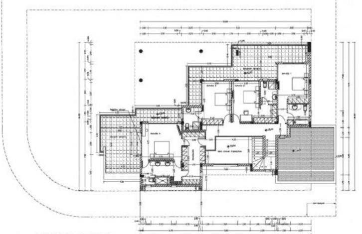 A house of contemporary design in three levels in a double corner plot with a big garden. On the ground floor the lounge, the dining room and the living room have a view to the garden. There is also an office space, a modern kitchen with big cellar and a family dining room, and a guest WC. On the first floor there are four bedrooms, all with an en-suite bathroom and big verandas. On the lower level there is a big playroom, service bedroom with WC, laundry room, and the C/H boiler room.