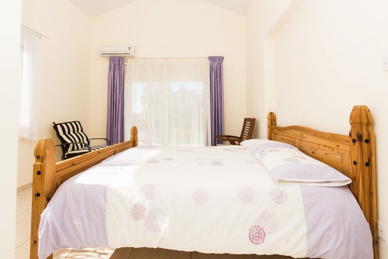 Все спальные комнаты очень просторные с большими гардеробными. Главная спальная комната располагает индивидуальной ванной комнаты и патио-дверями ведущие на балкон, откуда открывается великолепный вид на море и полуострова Акамас.