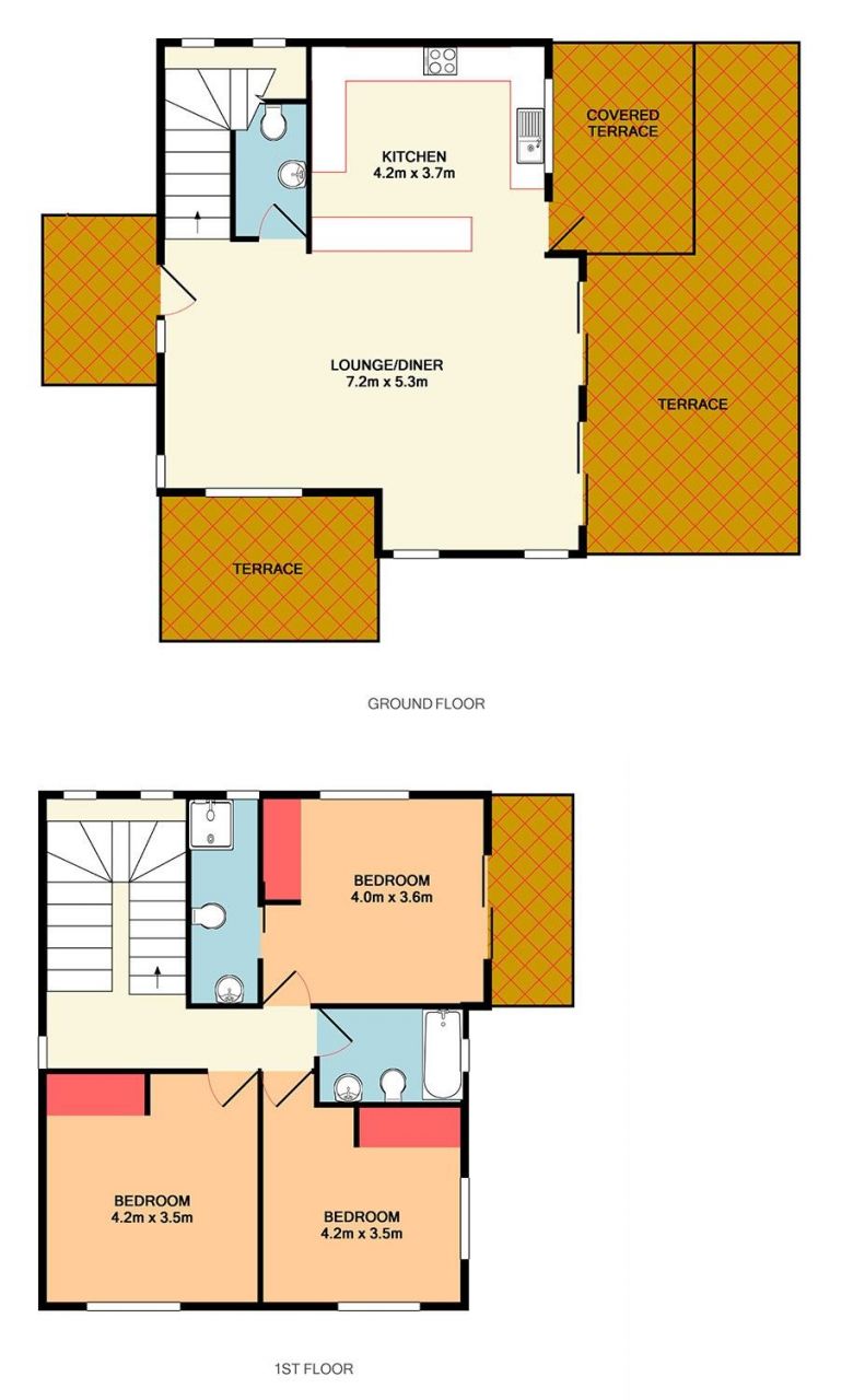 На верхнем этаже между двумя спальными комнатами, расположена семейная ванная комната.