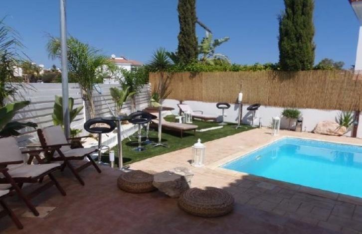 Прекрасная двух-спальная вилла с бассейном и садом.Эта вилла расположена в тихом районе Айя-Текла,всего в нескольких минутах от моря. Она состоит из двух комнат и прекраснoй жилой площади. В том числе телевизор, и кондиционер, всё предоставлено для Ваших удобств. Айя Текла является идеальным местом для тех, кто ищет уединение.