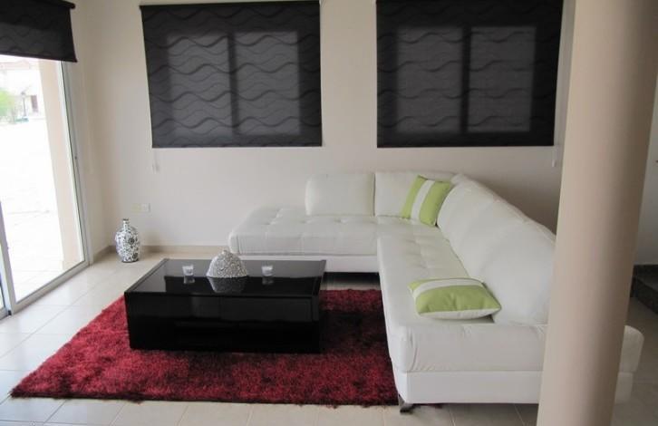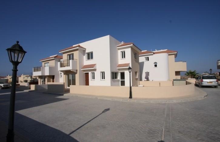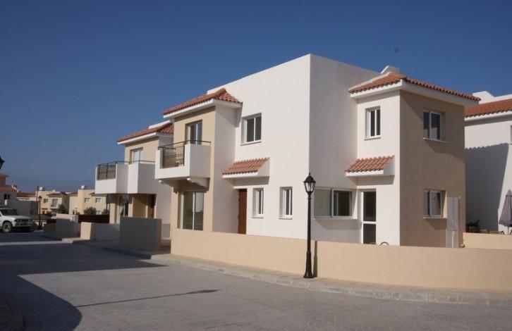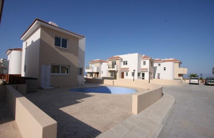 A great lcul-de-sac comprising sixteen 3-bedroom villas with private swimming pools around a private road controlled by electric gate. The construction was completed in 2008 and the houses were renovated in 2012 when the exterior walls were repainted and embellished with natural stone at their perimeter. The project is located in a residential area, within walking distance from public transportation and shops and easy access to schools and the beach. Separated Title Deeds have been issued and the houses are exempted from V. A.T. The interior encompasses a spacious kitchen and lounge area with exit points to the yard and private swimming pool in an open-plan layout that includes a storeroom and a guest W. C. The sleeping area is located upstairs, three comfortable bedrooms with ample storage space and a family bathroom. Other technical features include ceramic flooring, built-in solid wood wardrobes, granite kitchen benches, double glazed windows, boiler, solar storage heater and water pressure system. The kitchen is semi-fitted with over, hob and extractor; walls feature telephone, T. V. and electricity lines. Air-condition is provisional.