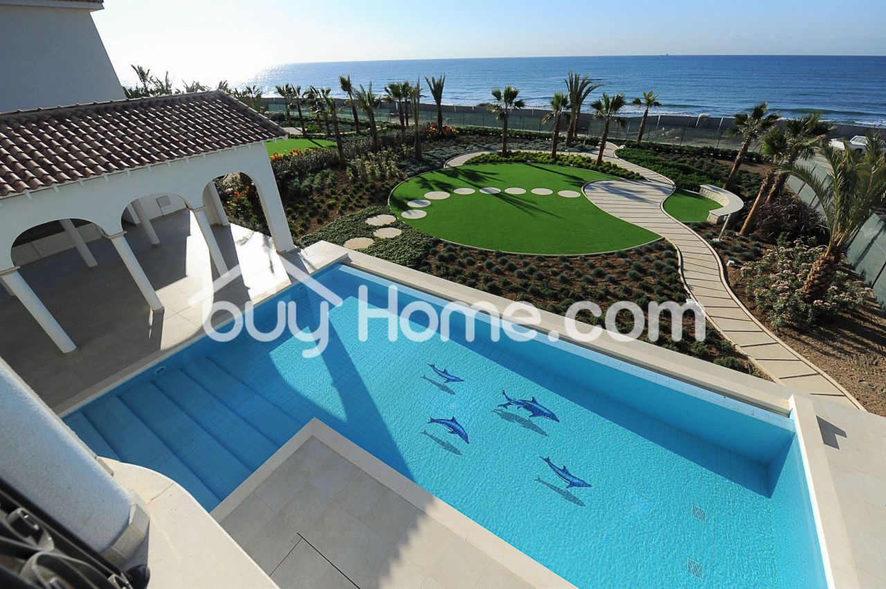 Luxury beach front 5 bedroom villa for sale in Larnaka, Cyprus with uninterrupted sea views. Only 15 minutes from the city center and 10 minutes from the International Airport. Part of a luxury private complex “Faros Sea Residence” on the beachfront with amazing panoramic sea views. It is part of an exclusive gated community with only 16 villas available for private ownership with the highest level of security services. This Mediterranean villa has a covered area of 721 m² and sits on a plot of 1910 m² with large landscaped garden. It offers 5 elegant bedrooms with 5 bathrooms, spacious living and kitchen areas, indoor spa area with sauna and Jacuzzi, gym, private outdoor swimming pool, covered parking and a marvelous barbecue area. The villa offers a high level of specification, including a fully integrated comfort cooling and heating system, full ‘Lutron’ control system for multimedia, lighting, blinds, heating, cooling and entryphone system. Offering an excellent combination of location, price and quality construction, this is definitely a fantastic opportunity to enjoy a Mediterranean lifestyle in total comfort.