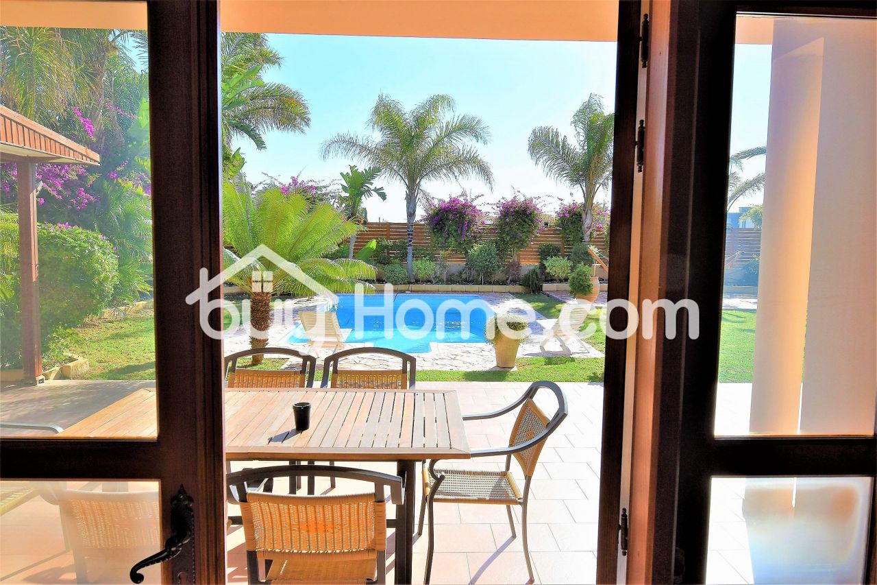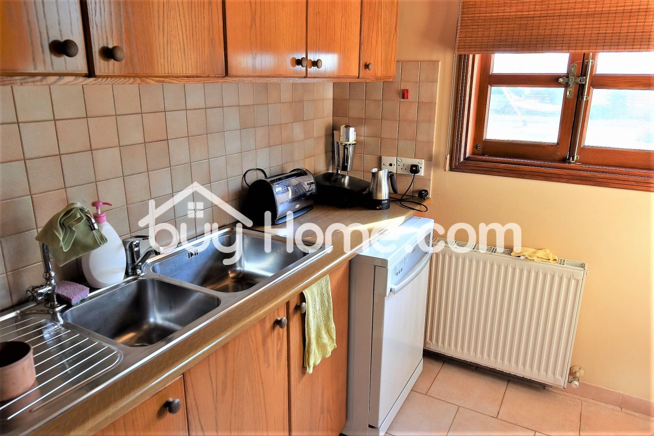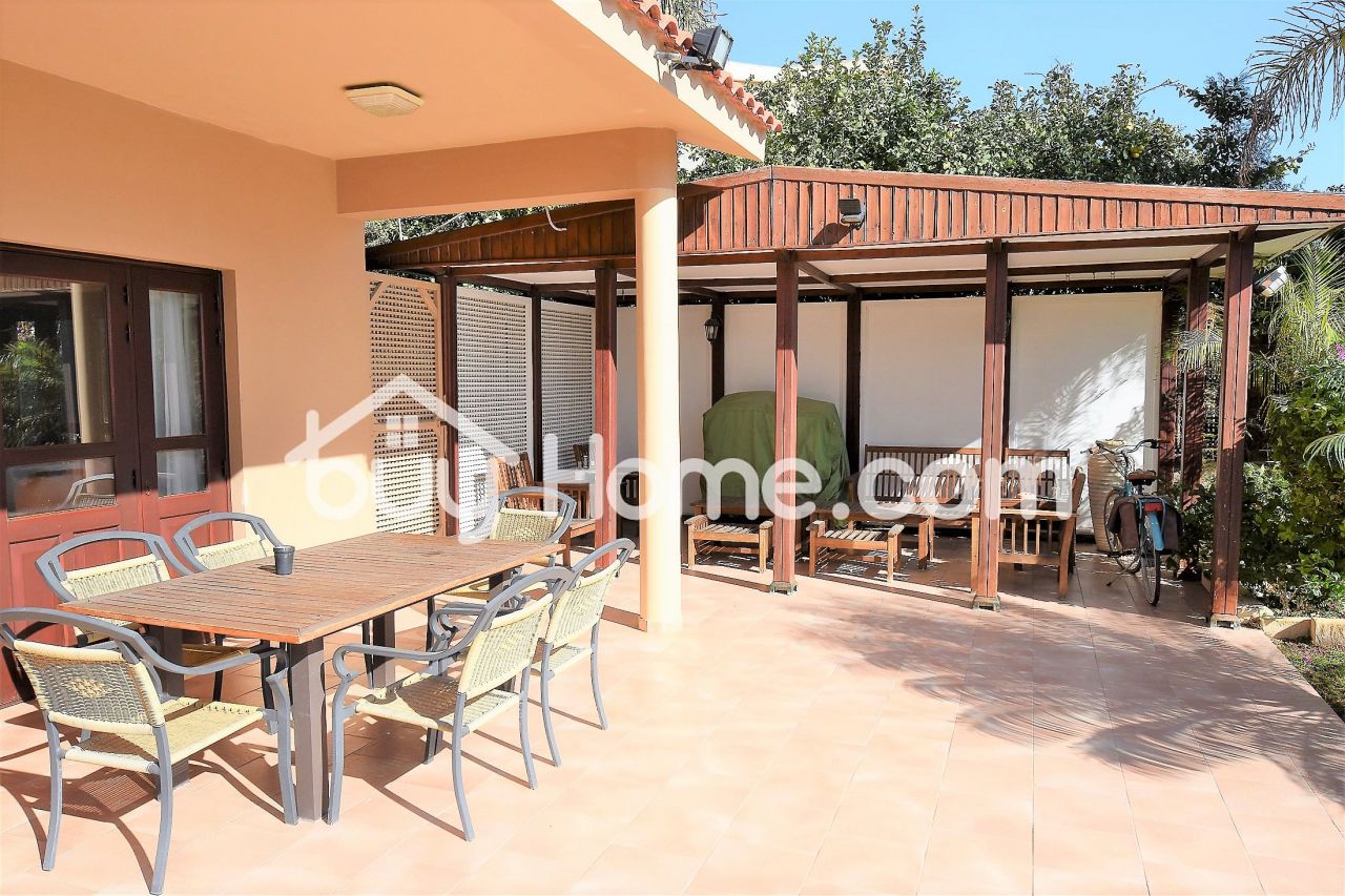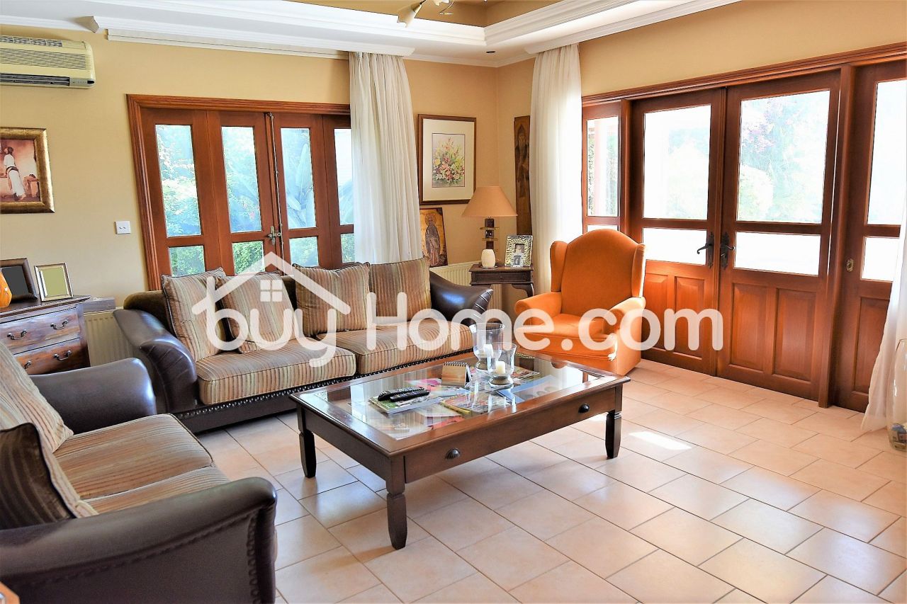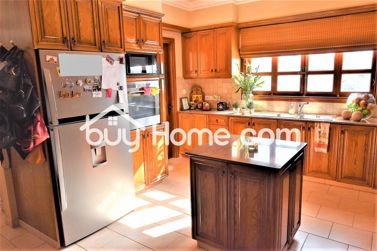 Buyhome is glad to present to you this wonderful 4 bedroom detached house set in an exclusively quiet area of Aradippou. Filled with character this house boasts spacious living areas with solid wood finishes throughout. Upon entering the stained glass solid wood front door, you are met by an impressive staircase and a formal sitting dinning area. Double french doors takes you into the open plan kitchen, breakfast, and family sitting room. There is also a utility room, guest WC and a bedroom with an en suite shower downstairs. Three more very spacious bedrooms upstairs with an en suite to the master bedroom, which also has a balcony overlooking the lovely garden. The outside area has a large patio and seating area with a pergola. established shrubs and greenery and a refreshing pool. A double garage completes the areas of this superb home. The house comes with full C/H and A/C. A viewing is highly recommended.