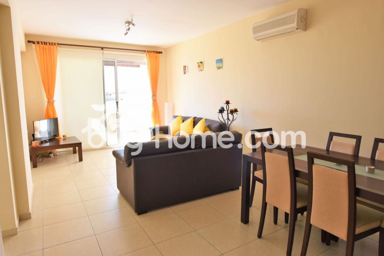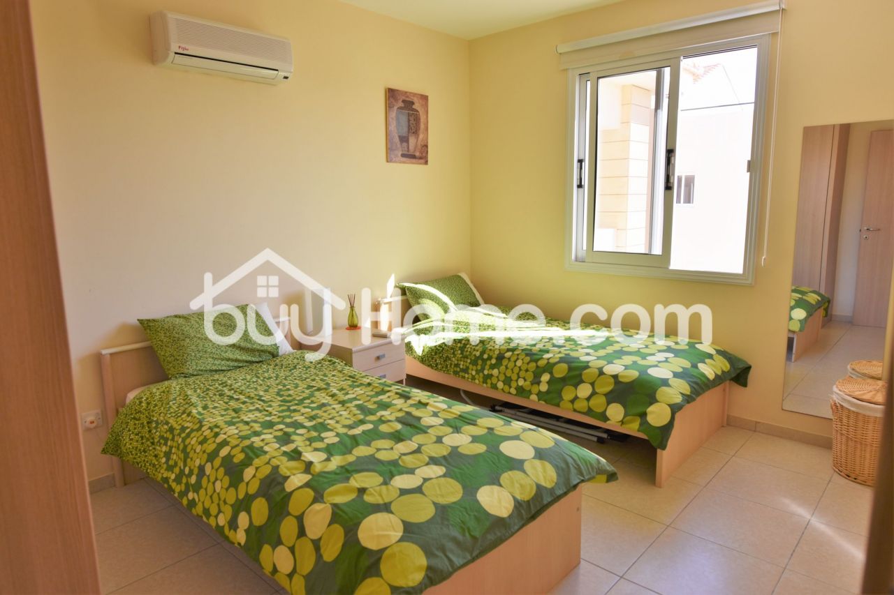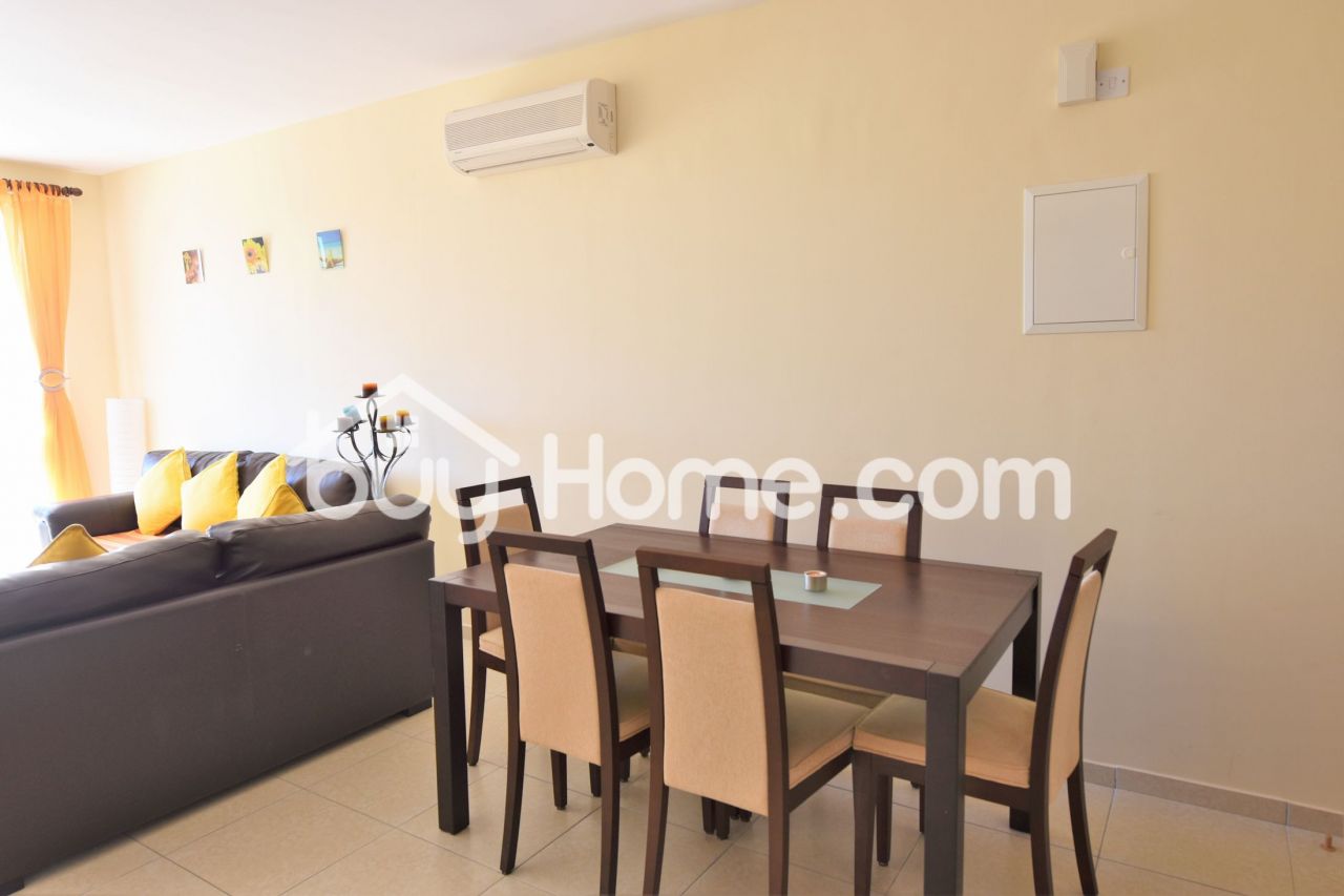 Luxurious two bedroom apartment situated in one of the most best projects of the area, security gated with communal swimming pool, tennis courts and mature trees throughout the whole project. Upon entering the property you are welcomed by bright open plan areas. The balcony of 12 s/m has a view of the fields and open areas which catches the sun for most of the day. Two spacious bedrooms with mounted floor to ceiling wardrobes. The current owners use the property only as a holiday home therefore the property is as good as new. A wonderful opportunity this apartment includes the A/C units, white goods and all the furniture.