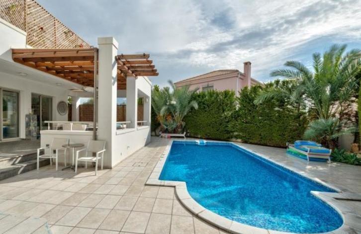 Продаётся шикарная вилла на острове Кипр. Эксклюзивная 3-спальная вилла находится в закрытом комплексе, который располагается в районе Аматунта города Лимассола, всего в нескольких минутах ходьбы от пляжа. Лимассол второй по величине город на Кипре, который охватывает южную часть Кипра. Климат Лимассола летом теплый и сухой, а зимой мягкий. В Лимассоле есть очень хорошие пляжи, богатые песком и подходящие для принятия солнечных ванн и плавания. Вилла имеет превосходный вид на море. В доме есть просторная гостиная комната, уютные спальные комнаты, ванные комнаты, оборудованная кухня и просторная веранда, а также вилла оснащена необходимой бытовой техникой. На территории виллы находятся бассейн и великолепный сад. Жители этой роскошной виллы могут пользоваться удобствами комплекса. Вилла имеет роскошный дизайн и современный архитектурный стиль. Отличное расположение рядом с пляжем и городскими удобствами.
