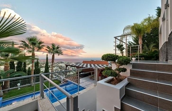 Эксклюзивная 5-спальная вилла с потрясающим панорамным видом на море и город, находящаяся в районе Агиос Тихонас города Лимассола. Дом включает в себя просторную гостиную со столовой зоной, зону отдыха, 5 больших спальных комнат, комната для прислуги, 4 ванные комнаты, 2 оборудованные кухни, обширную веранду с деревянной беседкой. Полностью меблирован, оснащен системой отопления и кондиционирования воздуха, предлагает роскошный дизайн, стильный декор, частный бассейн, сауну, 2 кладовые комнаты, крытый гараж и прекрасный сад. Великолепный жилой район рядом с пляжем и городскими удобствами.