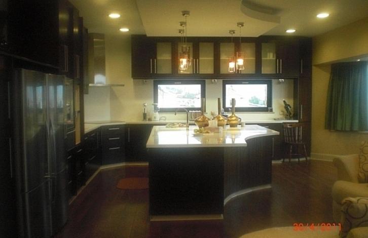 Роскошная современная отдельно стоящая вилла с 5 спальнями, расположена в районе Калогири с великолепным видом на море. Дом состоит из 3-х этажей площадью в 600 м2 на участке 956 м2. Находится между двумя параллельными улицами, с отдельными входами. Автоматические ворота для въезда, гараж на несколько автомобилей, площадка для барбекю из литого бетона с бетонной скамьей и умывальником. Вилла состоит из пяти спален, каждая из которых с собственной ванной комнатой, большой подвал с сауной и тренажерным залом, просторные веранды, бассейн 6 x 12. Сад рядом с домом с искустно оформленным ландшафтным дизайном оснащен автоматической системой полива. Конструкция предусматривает установку индивидуального лифта. Вилла характеризуется высоким качеством внутренней и внешней отделки, в том числе дорогих сортов дерева, камня и мрамора. Подогрев пола и установка центрального спутника, предоставление центрального управления камерой, полное кондиционирование -все это включено в дизайн.Установлена система сигнализации.