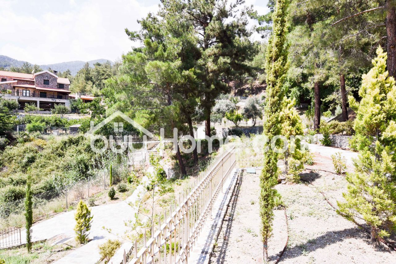 BuyHome are pleased to offer this opportunity to buyers. The house is situated in a fully landscaped spacious plot. The house is three bedrooms and three bathroom and features a spacious living area with kitchen as well. the main feature of this property is the plot, situated in a quiet exclusive spot in Troodos Mountains. The plot has been landscaped and a stone path made all over to allow use of the buggy or segways to enjoy going around. The garden also feature a modern observatory or star gazing room however you choose to use it. Mature plants are scattered through out the plot and a forest area is also situated toward the bottom. This mountain retreat would benefit from a business looking to open a spa or a boutique mountain hotel .