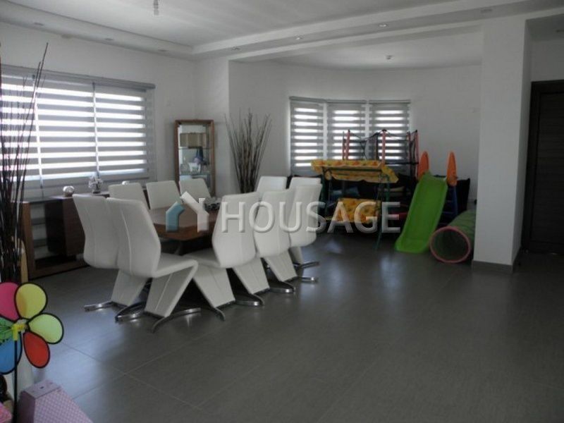 Вилла сидит на большом участке с прекрасным ландшафтным садом. К услугам гостей большая гостиная зона открытой планировки, большая кухня с обеденной зоной и камином и подсобное помещение. За кухней есть веранда с барбекю и с панорамным видом на море и горы на полуостров Акамас. Также на первом этаже есть спальня с двуспальной кроватью с ванной душевая комната и гостевой туалет. На первом этаже есть три спальни с двуспальными кроватями, главная спальня с ванной комнатой и гардеробной. Две передние спальни имеют свои собственные балконы с захватывающим видом на Акамас. На нижнем этаже находится большая спальня/офис с ванной комнатой и душем. Неподалеку, в гараже достаточно места для четырех автомобилей. На этом уровне есть также гостевой туалет и четыре кладовые. Сад полностью благоустроен с фруктовыми деревьями, кустарниками и обилием цветов. Есть разрешение на строительство бассейна.