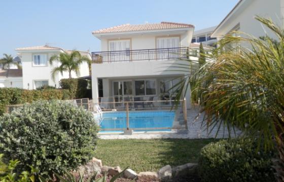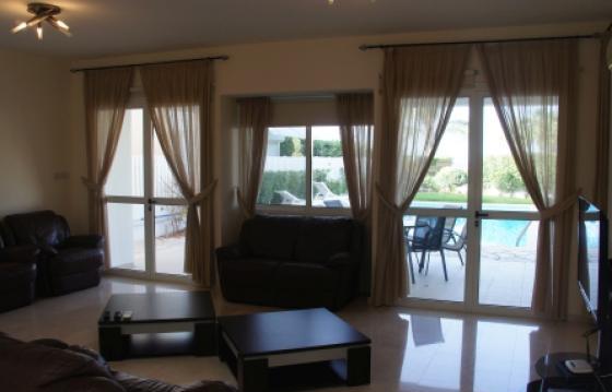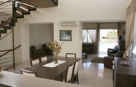 Вилла в Пафосе у моря, Корал Бей Просторная современная 5 спальная вилла на приморском курорте Корал Бей, в шаговой доступности пляжей, магазинов, ресторанов, автобусной остановки. Вилла расположена в закрытом комплексе. На территории виллы расположены большой бассейн 5х10 метров, барбекю, лужайка. Первый этаж дома состоит из просторной гостиной с выходом на крытую террасу и к бассейну, столовая с двойным светом, кухня, гостевой туалет. На втором этаже- 3 спальни и ванная комната. Две спальни имеют выход на большой балкон с видом на море. Одна и спален имеет так же индивидуальную ванную комнату. На нижнем уровне расположены гостиная с выходом по ступеням вверх к бассейну, две спальни и ванная комната. Проводка под отопление.