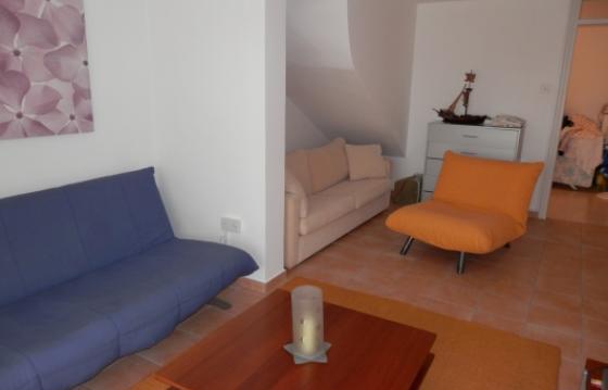 На первом уровне таунхауса расположены кухня, гостиная с выходом на балкон с видом на море, гостевой туалет. На нижнем уровне расположены подсобное помещение(может использоваться как дополнительная кухня) и комната-спальня с выходом в садик. На верхнем уровне- 2 спальни (одна с видом на море) и ванная комната.