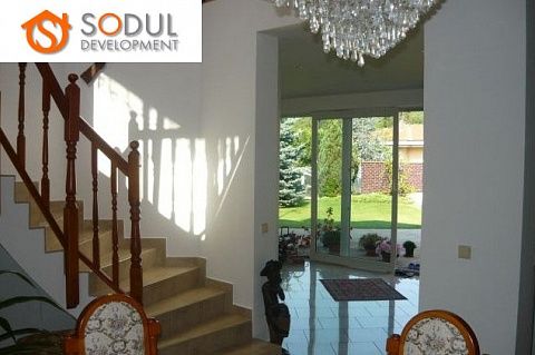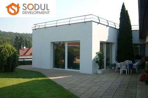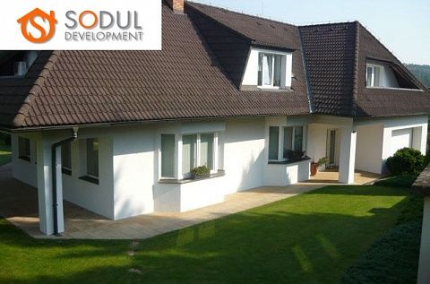 Роскошная вилла в коттеджном поселке в Праге 6-Небушице на ул. К Виницим, в 11 мин езды на автобусе от станции метро Dejvicka. Вилла была построена в 1998 году. Тепло в доме обеспечивает система тепловых насосов вместе с тремя 80-метровыми скважинами (пол с подогревом во всем доме + отопление постройки с бассейном). Планировка: подвал (мастерская, подсобное помещение, прачечная, комната для сушки, прихожая и лестница) 54 м2. Первый этаж: гараж на две машины с входом в дом 31 м2 + к дому прилегает постройка (85 м2) с бассейном (32 м2) и отдельной квартирой 1 + 1 (36 м2), прихожей, кухней, гардеробной и ванной комнатой с душевой кабиной и туалетом. Прихожая на первом этаже объединяет главную, жилую часть дома с гаражом, бассейном и квартирой 1 + 1.